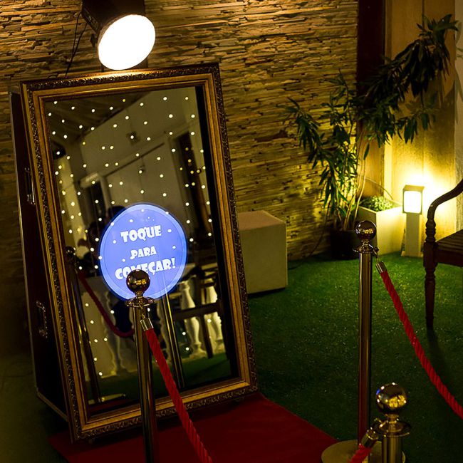 Funciona como um espelho interativo que faz fotos do corpo inteiro, e tambem e possivel assinar ou desenhar na foto. E sensacional!